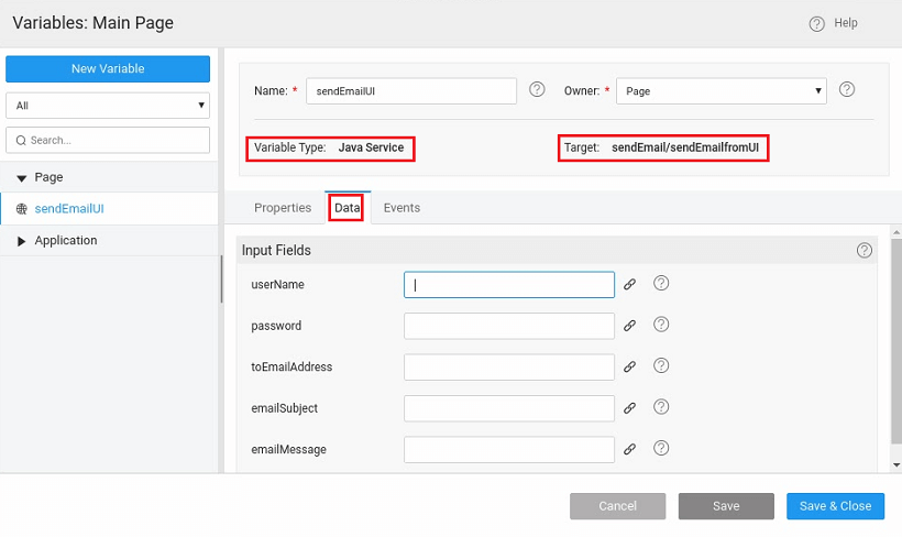 1. To invoke the Java Service create a new Variable for Java Service: