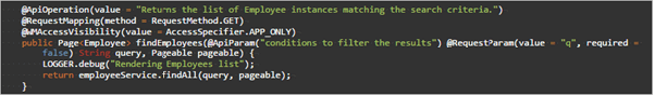 APIs that use HQL Queries: The Filter, Count and Export API in every Table Controller will use the HQL query, which is an optional parameter, for retrieving the data. These APIs can be found in respective tables’ controller class file.