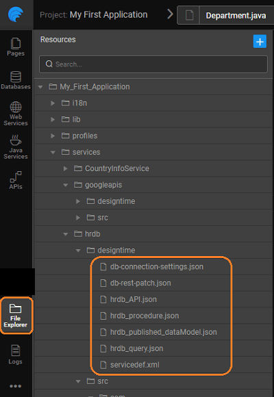 db-connection-settings.json: it contains connection properties.servicename_API.json: Generated API specification (swagger) of given service.servicename_procedure.json: contains information regarding procedures for that service.servicename_query.json: contains information regarding query for that service.servicename_published_datamodel.json: contains database schema information. It plays a major role while updating DB changes. Whenever you do manual changes in the database you have to re-import to update this file.servicename_draft_datamodel.json: Contains user modifications. It’ll delete when we do update/re-import database.servicedef.xml: contains types information for this service.