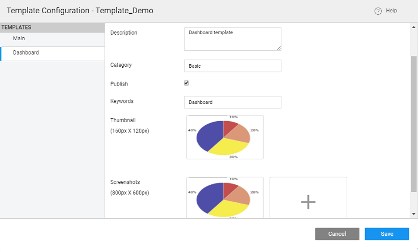 • add a Thumbnail to be displayed on the Templates selection dialog, and