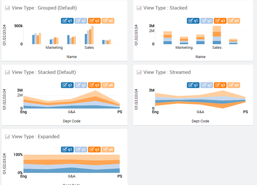 Data Arrangement Property (available only for Column, Area and Bar Charts) controls whether to show the areas in: