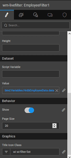 - You can specify the number of records to be fetched via the Page Size property of the Live Filter. By default, this value is set to 20.